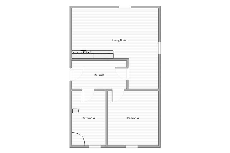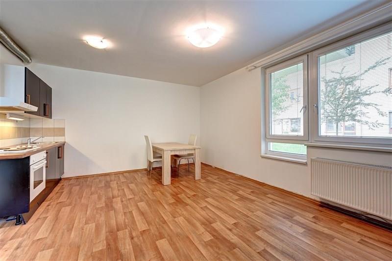 Obývací pokoj s kuchyňským koutem je poměrně prostorný (28 m2) a je mírně do "L", samostatná ložnice má rozměr (12 m2), koupelna (5 m2), předsíň (5 m2).