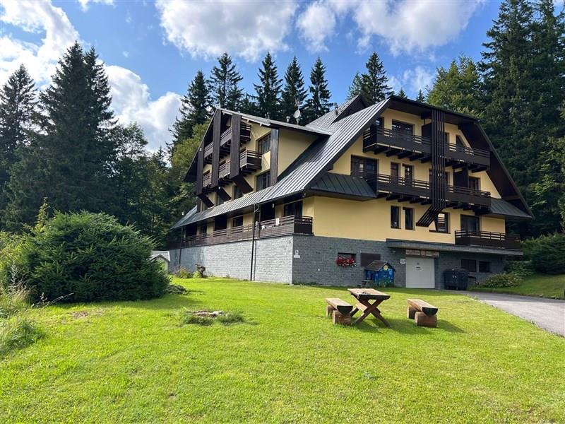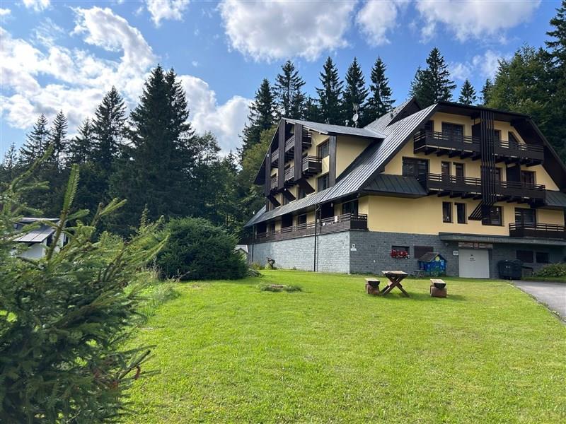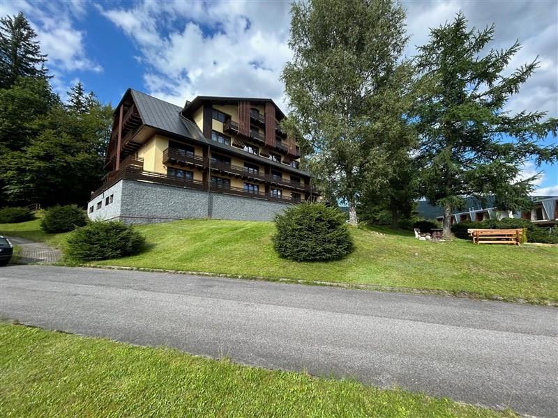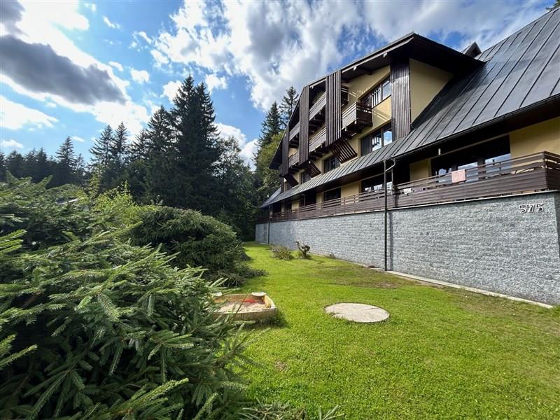 REZERVACE Nabízíme k prodeji horský apartmán/byt v klidné části horského střediska Harrachov Nový Svět Sachrův kopec. Byt má dispozici 3+kk, 74,4 m2 + 2 x lodžie ( 3,60 a 3,15 m2), garážové stání, zděný sklep. Byt se nachází ve 3.NP apartmánového domu postaveném v r. 2007 na krásném místě přímo u lesa s krásným výhledem do okolní krajiny s rychlím přístupem do běžecké stopy, na cyklostezku či na oblíbené turistické trasy. Atraktivní a turisticky žádaná lokalita po celý rok, byt je vhodný jak k trvalému bydlení , tak jako investiční nemovitost která bude žádána v létě i v zimě. Rozložení bytu: obývací pokoj s lodžií ( 23,43 + 3,15 m2) kuchyňský kout s oknem (5,58 m2) vstupní chodba a předsíň s vestavěnými skříněmi (12,32 m2) ložnice č.1 (10,67 m2) ložnice č. 2 s druhou lodžií ( 15,67 + 3,60 m2) koupelna s vanou a WC (5,19m2) druhé WC s umyvadlem je samostatně (1,56 m2) K bytu patří jedno garážové stání a zděný sklep ( 3 m2), obojí v 1.NP domu. Byt se nabízí i s kompletním vybavením: nábytek, postele, vestavné skříně, sedací souprava atd. Na přání kupujícího je možné vše vystěhovat. Kuchyňská linka je kompletně vybavena spotřebiči elektrická varná deska, myčka, lednice, mikrovlnka + drobné spotřebiče, v koupelně pračka. Vytápění a ohřev vody – v domě je vlastní plynová kotelna. WIFI, Skylink Okna dřevěná. Na podlahách plovoucí podlahy a dlažba. Ski bus kousíček od domu. Nemovitost lze financovat hypotečním úvěrem, se kterým Vám rádi pomůžeme. Harrachov představuje skvělé místo pro milovníky sportu, krásné přírody, turistiky a zábavy. Pro zimní sezonu lze využít lyžařský areál Harrachov, který má 2 lanovky, 3 vleky a 7 sjezdovek o celkové délce cca 8 kilometrů. V létě je zde nespočet možností turistických tras a procházek např. ke známým Mumlavským vodopádům či na Čertovu horu, cyklostezky, různá sportoviště, bobová dráha, fitness, wellness atd. Občanská vybavenost Harrachova se neustále rozvíjí, naleznete zde mnoho restaurací, obchodů, půjčovny a servisy sportovního vybavení, sportovní školy, kulturní akce atd. Harrachov je z Prahy snadno dostupný po dálnici, autem trvá cesta cca 1,5 hodiny nebo přímé autobusové spojení z Černého Mostu. Provozní náklady 5.213, Kč/měs. + elektřina Volné ihned.