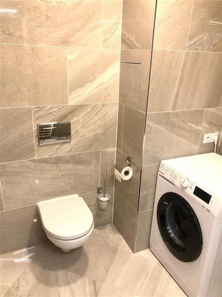 Obytný pokoj je vybaven moderní kuchyňskou linkou se všemi spotřebiči, včetně myčky a lednice, úložné prostory, osvětlení v celém bytě. V koupelně je také automatická pračka.