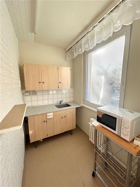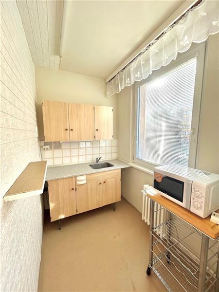 REZERVACE Pronájem bytu dispozice 1kk, 30 m2, Praha 4- Chodov. Kuchyňka oddělena od hlavního pokoje s vlastním oknem a topením ( 1+1). Byt je nabízen se zařízením - jednoduchá kuchyňská linka s el. vařičem, obývací stěna, vestavěné skříně, rozkládací sedačka, jídelní stůl + židle, v koupelně pračka. Kuchyňka je oddělena od hlavního pokoje a má vlastní okno. Koupelna s menší vanou, WC samostatně, na podlahách PVC a koberec, okna plastová, 2.patro s výtahem, k bytu patří sklep. Dům je po celkové revitalizaci. Topení ústřední, parkování před domem, veškerá občanská vybavenost, nákupy, MHD, park, sportoviště, krytý bazén, vše v místě nebo v docházkové vzdálenosti. Byt je určen k dlouhodobému pronájmu a je volný od 1.3.2025 Vhodný pro jednu, maximálně 2 osoby.