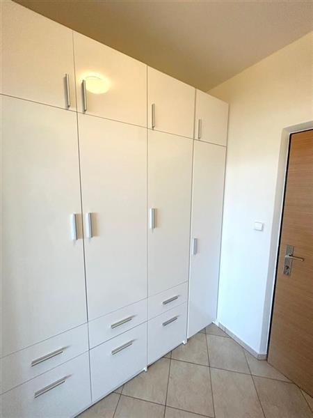 Na podlahách jsou plovoucí podlahy a dlažba, v předsíni velká šatní skříň, kvalitní nová rozkládací sedačka (označená na denní spaní), jídelní stůl + 2 židle, osvětlení v celém bytě, interiérové žaluzie.