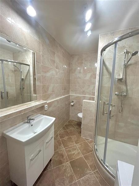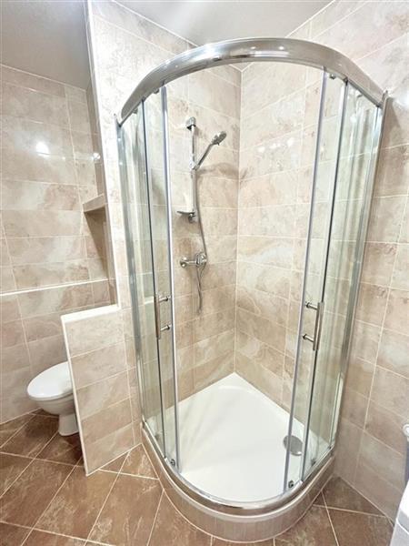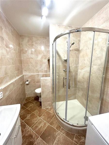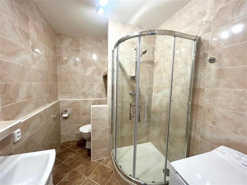 Zděná koupelna se sprchovým koutem, WC v koupelně, nová kuchyňská linka se spotřebiči ( el. sporák s troubou. lednice, pračka).