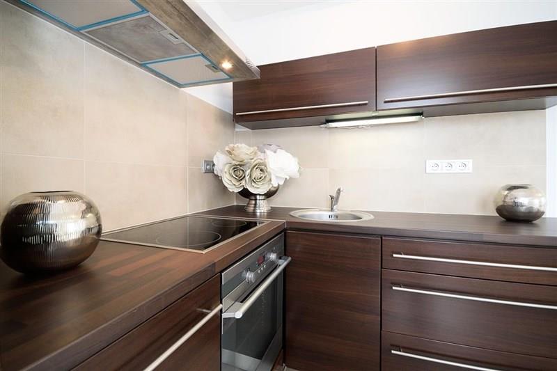 Byt se nachází ve 2.patře s výtahem, orientace JV, jedná se o rohový velmi světlý a slunný byt. Ze zařízení je zde kuchyňská linka s vestavěnými spotřebiči - lednice, el. trouba, sklokeramická varná deska, myčka nádobí, osvětlení v celém bytě, interiérové žaluzie ve všech oknech, v předsíni je velká ( 3 m široká ) šatní skříň. Koupelna je s vanou, WC v koupelně. Terasa je u obývacího pokoje i u ložnice. Na podlahách jsou kvalitní plovoucí podlahy a dlažba. V bytě je také samostatná šatna. K bytu dále patří garážové stání v suterénu domu a zděný sklep 4 m2.