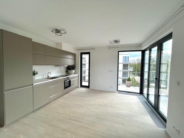 Nabízíme k pronájmu krásný, nový byt dispozice 2+kk, o rozloze 53 m2 s velkou rohovou terasou 24 m2, v atraktivní lokalitě přímo u Vltavy a golfového hřiště, P4 Hodkovičky.