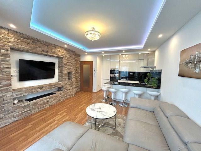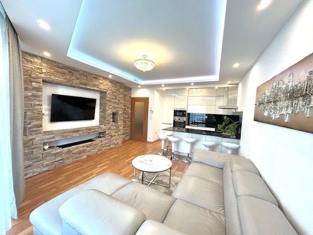 Byt má rozlohu 79 m2 + zasklená lodžie a je kompletně zařízen ve vyšším standardu.