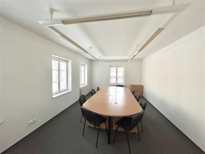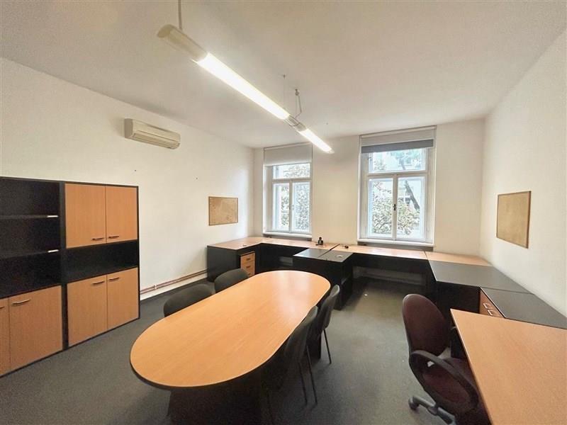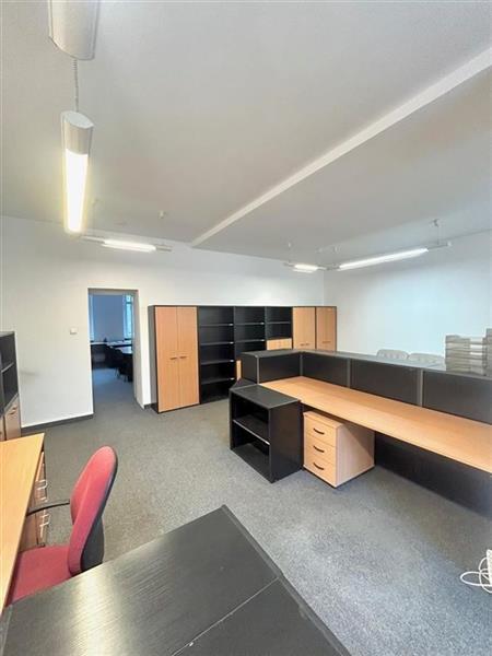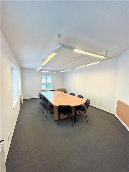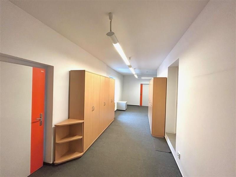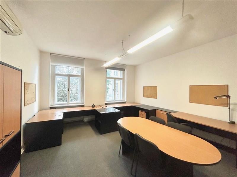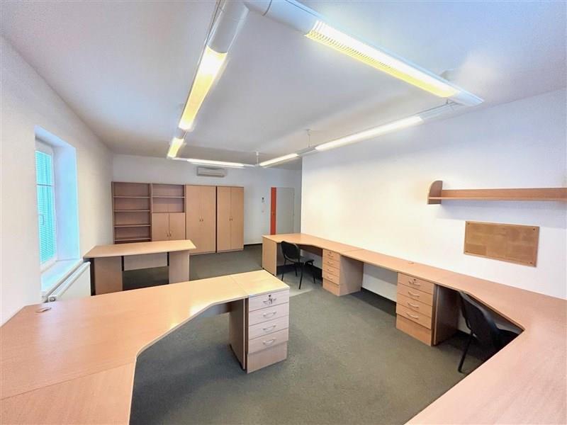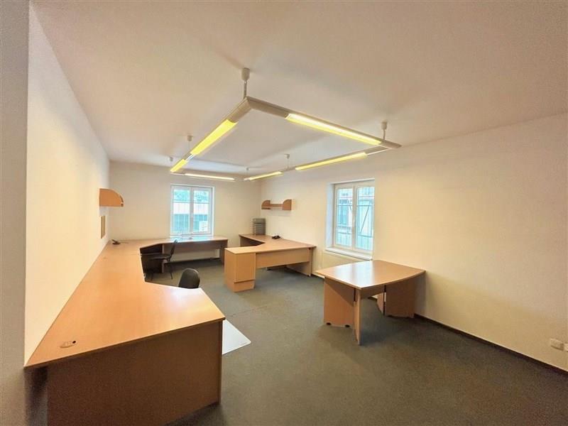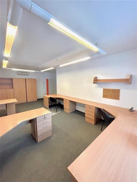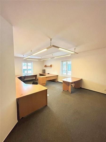 Větší část kanceláří ( 230 m2,) se nachází v 1. patře, zbylých cca 73 m2 v přízemí (tyto prostory lze zcela oddělit od ostatních a využít zvláštního vchodu) + lze pronajmout i přilehlý sklad ( 58 m2 ) s vchodem/vjezdem z vnitrobloku ( sklad je za příplatek a není podmínkou). Prostor je vytápěn plynovým kotlem, rozvod PC po celém objektu, klimatizační jednotky ve všech kancelářích. V tento okamžik je objekt zařízen starším kancelářským nábytkem - lze vystěhovat. Volné ihned, určeno k dlouhodobému pronájmu. Ke kancelářím je vyhrazeno 6 parkovacích míst ve vnitrobloku budovy.